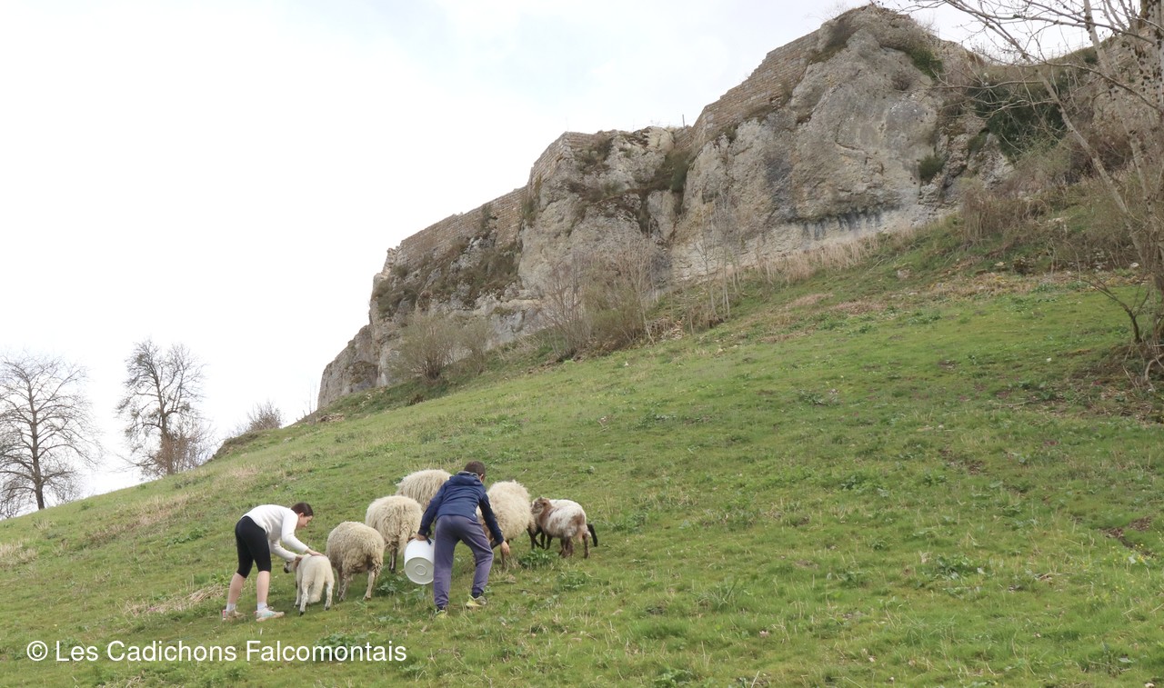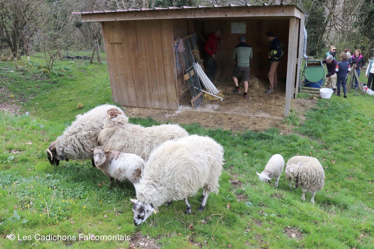 Les moutons peuvent profiter maintenant du bel espace de verdure aménagé au pied du château par les bénévoles de l'association "Le Château de Montfaucon"... tandis que Nestor a rejoint ses amis Biscotte et Choco dans leur pré.