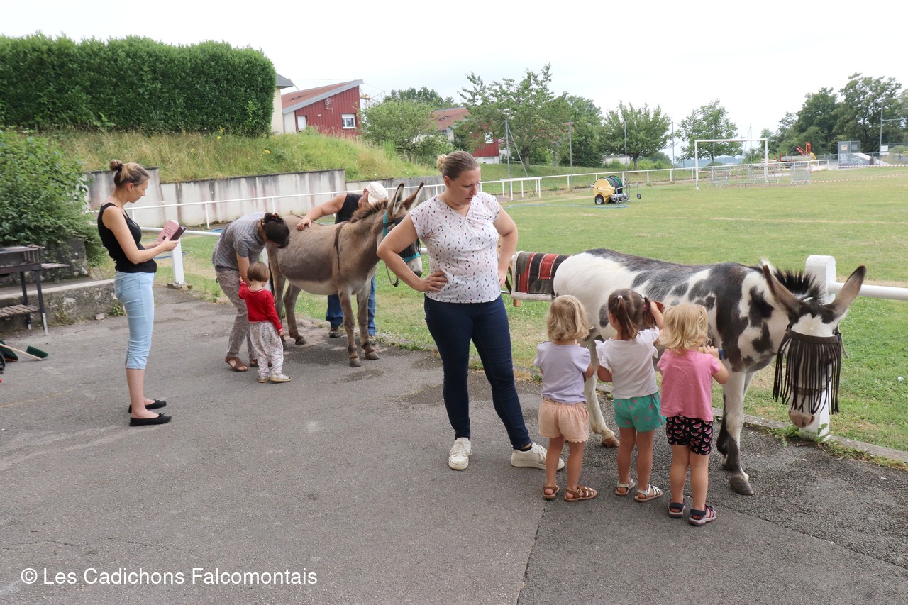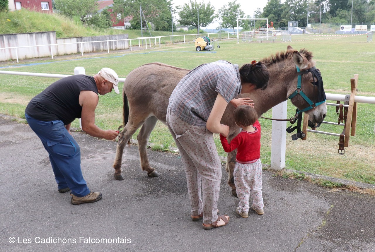 Après quelques consignes de sécurité ... attention on ne se met jamais derrière un âne qui pourrait nous donner involontairement un coup de sabot ...les enfants ont pu découvrir comment prendre soin de nos amis aux grandes oreilles (nettoyage des sabots, brossage, etc.). Grâce aux bons conseils de François, Didier, Patrick et Gérard, les enfants ont pu eux-mêmes s'exercer au brossage des cadichons ... un peu d'appréhension au départ, mais quelle fierté ensuite!
